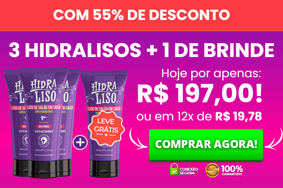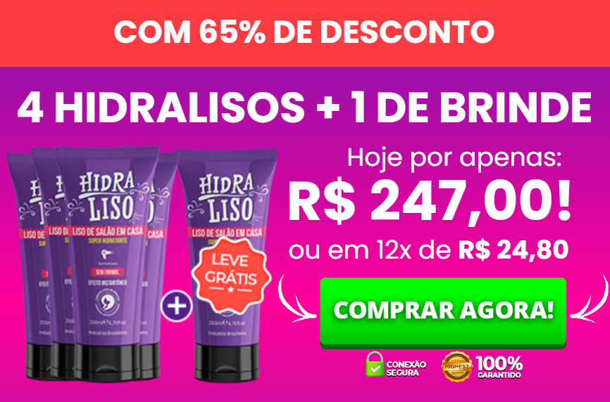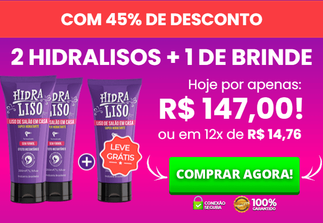 Acreditamos tanto na fórmula do nosso produto que criamos o Desafio 30 Dias Hidraliso. Na compra de qualquer kit, você já estará participando do desafio. Caso não obtenha resultados visíveis na primeira aplicação, nós devolvemos seu dinheiro. É a certeza que somente o produto número 1 de vendas no Brasil pode oferecer. Saiba mais.